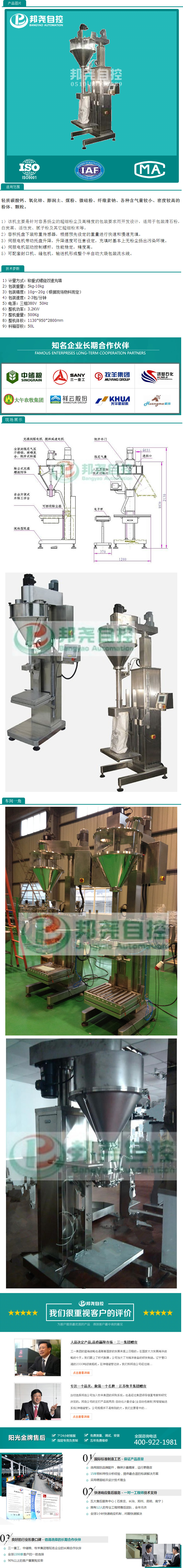 該機主要是針對容易揚塵的超細粉塵及高精度的包裝要求而開發(fā)設計,適用于包裝滑石粉,白炭黑,活性炭,膩子粉及其他超細粉末